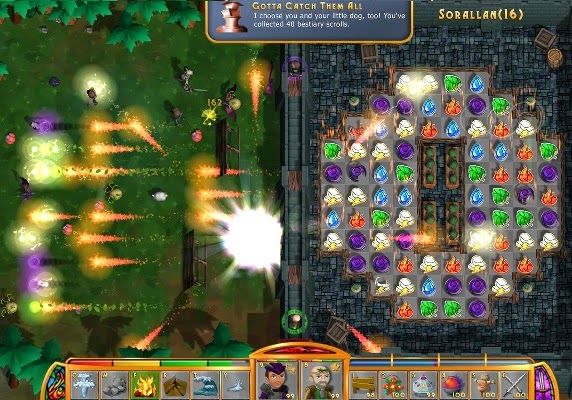What you choose may affect the aesthetics of your growing home, or provide you with additional money (triads), units, and even long-term benefits, like price reductions. I chose a desert setting and named my home "Atlantis." Clever, I know. Shut up. After setting numerous policies, I now have purple fungus growing all over the place, NPCs congregating outside my town hall (probably to kill me), and a giant blob monster bouncing around the place (probably to eat the congregating NPCs). Even better, every decision you make, regardless of whether or not you get a goodie for it, comes with a positive result. The game never makes you feel stupid for what you chose, and that alleviates the need to try and figure out what would be considered the "best" option. If that's not enough, there's also over 100 achievements to obtain, constantly doling out positive reinforcement for every little thing you do. There's a lot of love-dispensing in this to keep the player happy, and, more importantly, the gripes are few and far between. The only three I am aware of is that you're going to be craving wood all the time *giggle*, the quest rewards are pathetic (use five of an item and receive a mere 4 wood for it? what?!), and later battles involving "blocked" runes will sometimes cause a bug where the images of some tiles may overlap others. If a match-three refuses to work, that's probably why.